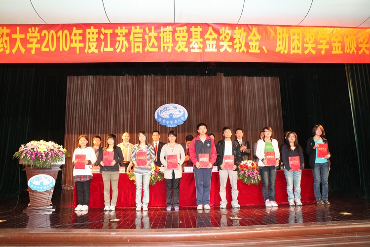 “江苏信达博爱助困奖学金”简介:江苏信达置业有限公司是由荷兰、法国华侨侨领和浙江信达投资有限公司投资组建的,拥有国家房地产开发二级资质的知名企业。公司在企业不断发展壮大的同时,不忘回馈社会,积极投身社会公益事业,捐资助学,出资1000万元设立了“江苏信达博爱基金”,该基金利用其中500万元每年产生的利息25万元,专门用于资助南京中医药大学的贫困大学生和支持中医教育事业。“助困奖学金”资助对象为我校在读的家庭经济困难且品学兼优的本科二年级以上学生,每年35人,每人5800元,用于支付学费和住宿费。“奖教金”,用于奖励我校各学院从事大学生思想政治教育和学生管理工作、成绩突出的优秀教育工作者。每年评选出20名,即信达“十佳辅导员”、信达“十佳班主任”,以促进我校人才培养和中医教育事业的发展。