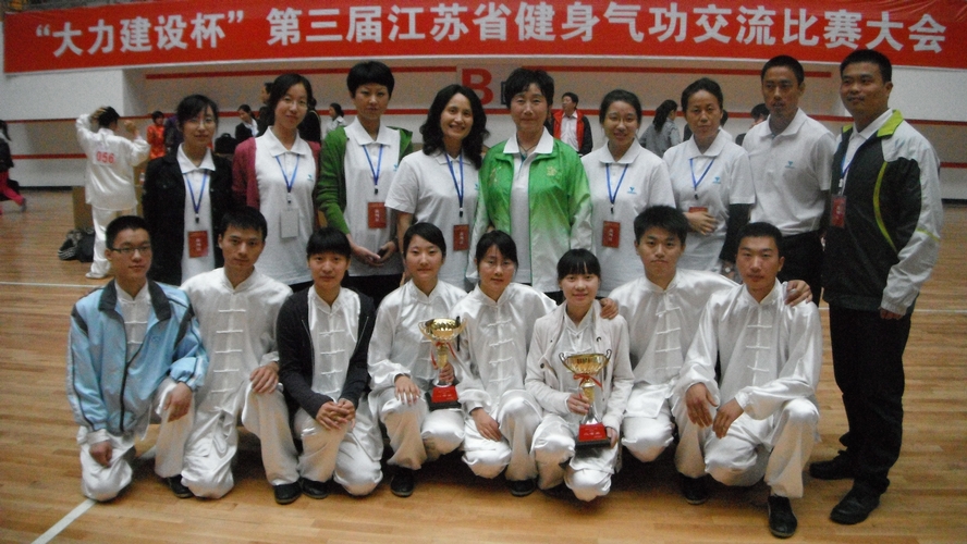 2011年5月21~22日,我校丰盛健康学院健身气功队代表学校参加了在连云港赣榆县举行的第三届江苏省健身气功交流比赛大会。在为期两天的比赛中,健身气功队的同学们本着锻炼自我,向前辈学习的态度在集体项目中获得健身气功易筋经传统功法一等奖、八段锦传统功法二等奖。在个人竞技功法的比赛项目中,朱金亚、韦庆波、乔明、张英豪同学在男子易筋经竞技功法、男子八段锦竞技功法、男子六字诀竞技功法中分别获得金银铜牌以及表演奖,尹一霖同学获女子易筋经竞技功法银牌。在个人传统功法的比赛项目中,潘桦飞同学获男子八段锦传统功法银牌,郑怡同学获女子八段锦传统功法铜牌,范遥遥同学获女子五禽戏传统功法第五名,王娟同学获女子易筋经传统功法第六名。总计获得2枚金牌、3枚银牌、2枚铜牌的优异成绩。