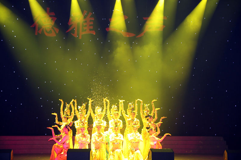 5月30日晚,由教育部、文化部、财政部主办的2011年“高雅艺术进校园”之中国东方演艺集团江苏站首场演出在我校仙林校区体育馆隆重举行,为全校师生带来了一场视觉与听觉的盛宴。江苏省教育厅副巡视员步锦昆,体卫艺处副处长刘扬生,中国东方演艺集团董事长、总经理、著名歌唱家顾欣,我校党委副书记、副校长陈涤平和2000余名师生到场观看了演出。