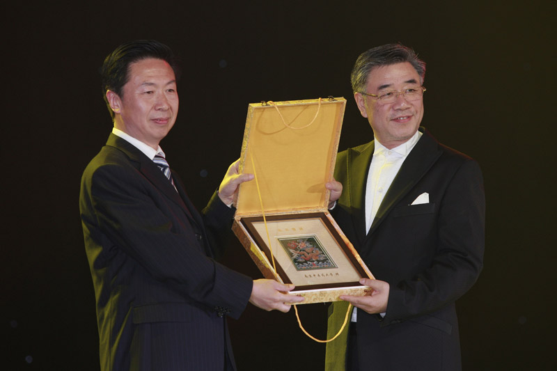 演出伊始,步锦昆副巡视员在致辞中指出,高等院校普及高雅艺术是加强大学生思想政治教育、推进高校校园文化建设的一项重要措施。陈涤平副书记则代表学校对东方演艺集团的演出致以热烈的欢迎和衷心的感谢,他表示,此次中国东方演艺集团出动了强大的演员和舞美阵容,足见对高校校园文化的支持与重视,今天的演出将是我校校园文化生活的一件大事,是全校师生共同的艺术盛宴,同学们可以零距离、在耳濡目染中走近高雅艺术,在艺术中抚慰心灵,陶冶性情,滋养灵魂,养清正之气。中国东方演艺集团总经理、著名歌唱家顾欣对东方演艺集团所秉承的“高雅艺术,进高校,培养高素质人才”的“三高”理念作了深刻诠释。他希望越来越多的青年学子走近艺术、热爱经典。随后,步锦昆副巡视员、陈涤平副书记和顾欣总经理代表三方互赠了礼品。