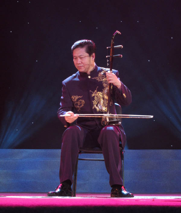 整场演出过程中,艺术家们以精湛的演技将一首首经典的曲目呈现在师生的面前。舞蹈《鼓舞东方》中拉开本次演出的序幕。非洲组合《拇指琴与小天使》以四人八手联弹的奇特演出形式,让观众在清脆悦耳的旋律中领略到来自异域的“天籁之音”。中国东方演艺集团东方民乐团团长、著名二胡演奏家、国家一级独奏演员周维一曲《赛马》将坚定有力的强音和快速急促的音型自然结合在一起,其热烈奔放、收放自如的演奏使听众深受感染,场上掌声一浪高过一浪。在现场同学的热情欢呼中,周维又加演了自己改编的《莫斯科的回忆》,将《莫斯科郊外的晚上》、《红梅花儿开》和《喀秋莎》等俄罗斯名曲一气呵成,独具匠心的演奏手法,体现了中国传统文化和外国民族文化的交融。东方歌舞团副团长郭蓉带来了其代表作《红旗飘飘》,激情的小提琴演奏点燃全场,台上台下齐声合唱的《歌唱祖国》更是将晚会气氛推向了高潮。舞蹈《梦幻艳波》、《铃铛》、《碧波孔雀》将舞蹈的韵律美、含蓄美和豪迈的激情展现得淋漓尽致,赢得观众阵阵掌声。作为压轴节目,东方演艺集团总经理、著名歌唱家顾欣亲自登场演绎了《共和国之恋》、《怀念战友》两首经典歌曲,诠释了高雅艺术恒久的魅力。最后,《展开翅膀》爱尔兰踢踏舞为演出画上了圆满的句号。