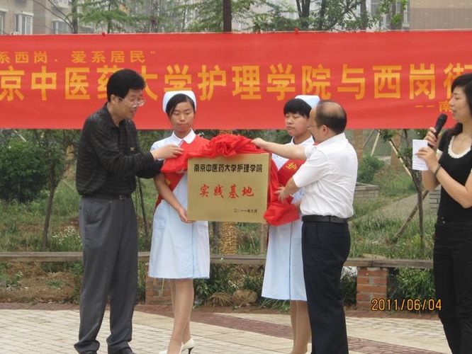 仪式开始,曹凯副部长首先介绍了本次街道和我校共建活动的总体情况,指出加强社区和高校的互动,有利于高校的人才培养,也有利于满足居民需要,实现社区和高校的“双赢”。西岗街道庄荣副书记代表街道领导讲话,他指出,社区居民对保健及养生知识需求强烈,非常欢迎来自高校的专家和同学们送来健康和服务。学院王红云副书记代表学院领导讲话,表示学院将依托专业和人才优势,充分发挥高校社会职能,为百姓健康和谐社区尽一份绵薄之力,通过共建社会实践基地,高校将与社会共同培养人才,使更多学生更好地在社会实践中受教育、长才干、做贡献。学生代表、分团委副书记汪楠同学发言,表达了同学们积极开展志愿服务的愿望和承诺。最后护理学院姚小平书记和庄荣副书记共同为实践基地揭牌,挂牌仪式圆满落幕。