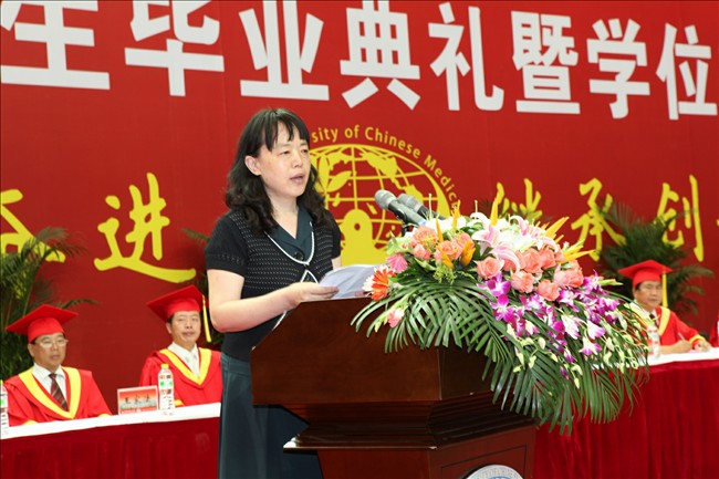 在毕业典礼暨学位授予仪式上,校长、校学位委员会主席吴勉华教授寄语毕业生要学会生存、端正做人、不断求知、努力发展,用自己的双手去开创美好的明天。副校长、校学位委员会委员段金廒教授宣读了《2011届优秀毕业生表彰决定》。副校长、校学位委员会委员黄桂成教授宣读了《学位授予决定》。南京中医药大学2011年大学生最喜爱的老师-药学院李祥教授,国家奖学金和校长特别奖获得者、校三好学生、优秀毕业生-第一临床医学院陈婕同学,国际教育学院马来西亚籍林衍志同学分别代表教师和毕业生发表了热情洋溢的讲话。随后,校领导和校学位委员会委员为2800名毕业生逐个颁发了学位证书、授予学士学位。