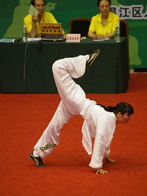 全国健身气功交流比赛大会比赛分为两个赛区,成都赛区为竞赛功法赛区;普通功法赛区设在新疆乌鲁木齐市。在成都赛区为期两天的比赛中,共有来自全国24支代表队的114名选手参与较量。我省代表队获得易筋经集体项目三等奖、六字诀集体项目二等奖的优异成绩,同时,我校尹一霖同学获女子个人易筋经第八名、徐勰获男子个人八段锦第一名。