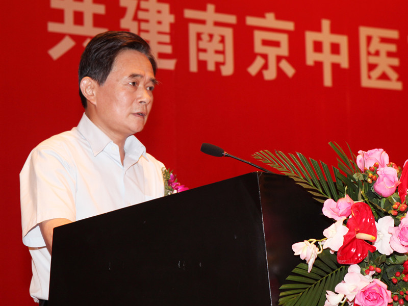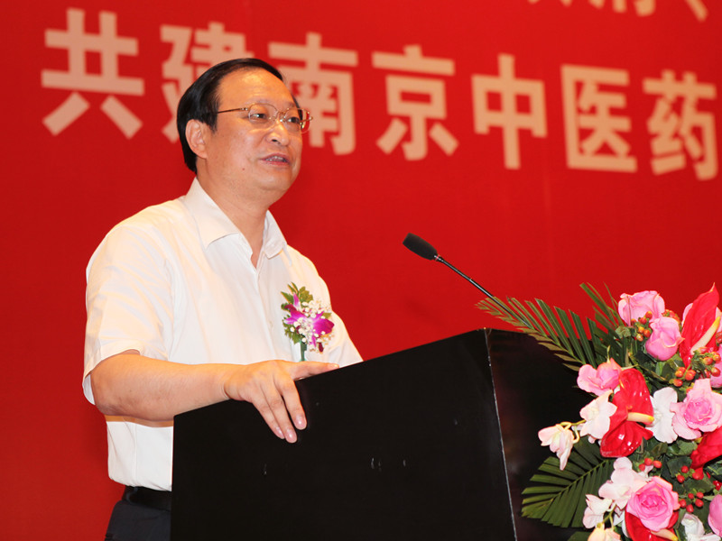 卫生部副部长、国家中医药管理局局长王国强在讲话中指出,具有深厚历史文化传承的中医药学,是我国医药卫生事业的重要组成部分,在保障人民健康、促进经济社会协调发展中发挥着不可替代的重要作用。江苏省人民政府和国家中医药管理局签署共建南京中医药大学协议,是新形势下地方政府与国家行业主管部门携手建设具有行业特色优势的高水平大学的重要实践,标志着双方在推进中医药发展方面的合作进入了一个新阶段,标志着南京中医药大学改革发展进入了一个新时期。江苏省将南京中医药大学作为高等教育综合改革试点高校,并将中医学、中药学、中西医结合学科列入江苏高校优势学科建设工程,彰显了省委省政府的远见卓识和务实精神。王部长强调,南京中医药大学一定要继续大力推进教育教学改革,积极探索符合中医药人才成长规律的现代大学制度;要以学科建设为龙头,以江苏省优势学科建设工程的启动为契机,全面提升内涵建设水平;要加强办学模式的改革与创新,加强实践探索和经验总结,在以自身的特色和优势服务地方经济社会发展形成模式和机制。总而言之,就是希望南京中医药大学认真按照省局共建意见的目标任务,在中医药人才培养、科学研究、社会服务、文化传承创新、国际交流、政策研究等领域加快建设步伐,早出、多出可供行业示范推广的经验与人才,以中医药教育的优异成绩向党和人民汇报。王部长代表中管局表示,将协同江苏省政府,将南京中医药大学列为重点支持高校,在政策、项目、经费等方面给予扶持,指导和支持学校组织实施共建项目,共同促进南京中医药大学建成高水平、有特色的一流大学。