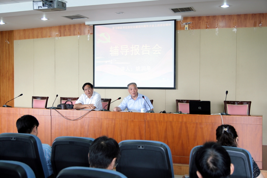 与会人员共同聆听了南京大学姚润皋教授的辅导报告。姚教授紧密结合他对我党历史、现实和未来若干重大问题的思考,从我党建党过程中做成的“三件大事”、做出了“四个选择”、经受的“四个考验”,以及“五个坚持”和“五个坚定不移”等角度全面系统的梳理了胡锦涛总书记“七一”讲话的内容和精神内核。姚教授指出,胡锦涛总书记“七一”重要讲话不仅是党继往开来的行动纲领,更是党永葆青春活力的政治宣言。黄成惠书记高度赞扬了此次报告会,认为报告不仅是一个理论工作者对我党90年历程的诠释,更是一顿精神大餐,使与会者在很短的时间内打开了视野,把握了“七一”讲话的要点,把大家带到了一个新的理论水平高度。