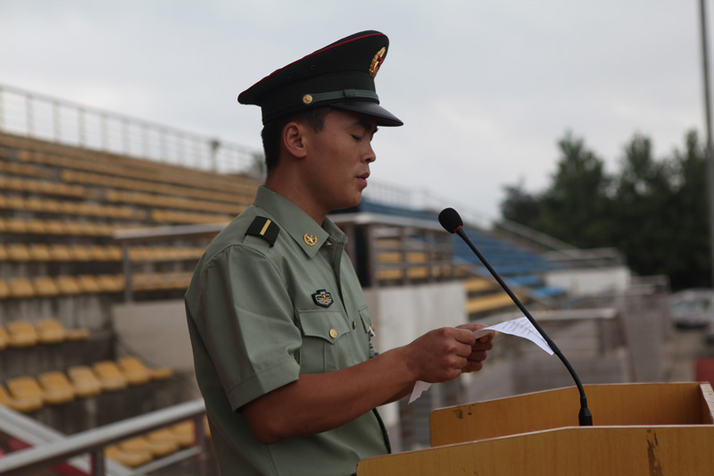 “一年一度秋风劲,又见沙场秋点兵”。99日上午,我校 2011级新生军训动员大会在西操场隆重举行。解放军理工大学工程兵工程学院学员大队政委董刚上校,军训团团长、解放军理工大学军事教育系教研室主任杨国兴上校,军训团参谋长、解放军理工大学工程兵工程学院学员大队学员队队长杨波少校,我校党委副书记、副校长、军训工作领导小组组长陈涤平同志,校党委常委、副校长、军训工作领导小组副组长黄桂成同志,以及校军训工作领导小组全体成员出席了动员大会。