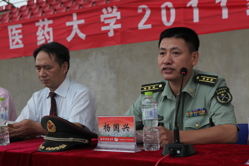 在动员大会上,军训团团长杨国兴上校介绍了军训组织实施计划,就本次军训的任务、安排、目标和要求等做了周密细致的部署。军训团教官代表潘桂森同志、受训学生代表基础医学院顾任钧同学先后发言,一致表示要以饱满的热情、高昂的斗志投入到军训之中,用激情和汗水圆满完成此次军训任务。董刚政委代表承训部队希望同学们听从指挥、遵守纪律、团结协作、勇于吃苦,争创军训优秀佳绩。同时要求军训教官牢记军人使命,坚持以人为本,注重科学施训,树立文明形象,努力为军旗增辉。陈涤平副书记向同学们说明了军训对大学生成长的重要意义,希望全体同学以饱满的热情投身到军训这一大学生涯的第一课之中,以顽强的意志克服种种困难,以坚定的信心迎接胜利的到来,用自己的汗水,在大学生涯的篇章里写下浓墨重彩的第一笔。