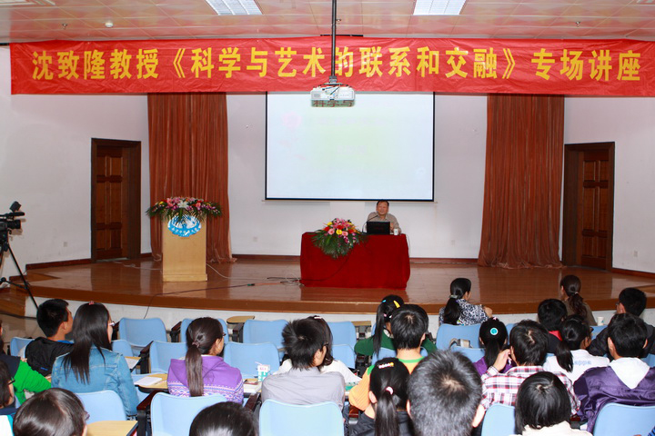 9月20日下午3点,我国著名物理化学教授、艺术教育家、多元智能理论专家沈致隆教授,在我校大学生活动中心107报告厅为我校师生带来了2011高雅艺术进校园第二场暨“名人名师名家进校园”第三十七讲《科学与艺术的联系和交融》专场讲座,校团委郑晓红书记、杨羽副书记等老师与同学们一起聆听了这场精彩的讲座。