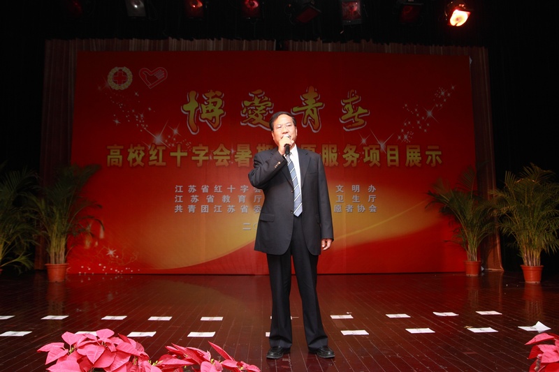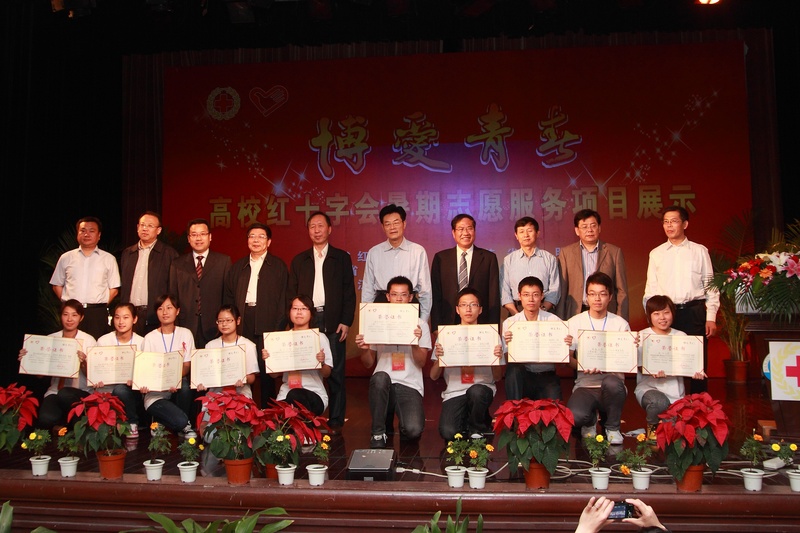 由江苏省红十字会、省文明办、省教育厅、省卫生厅、团江苏省委、江苏省志愿者协会共同主办的“博爱青春”高校红十字会暑期志愿服务项目总结交流展示会于201192324日在我校举行。江苏省红十字会会长吴瑞林、江苏省红十字会常务副会长潘宗白、南京中医药大学党委书记黄成惠、江苏省卫生厅巡视员吴坤平、江苏省红十字会常务副会长张立明、江苏省红十字会党组书记、副会长李新平、南京中医药大学校党委副书记、副校长陈涤平、江苏省红十字会党组成员、秘书长李玉宁、共青团江苏省委志愿者工作部部长龚亲华、江苏省文明办志愿者处副处长屠法、江苏省教育厅体委艺处副处长姚志化、13个省辖市红十字会红十字青少年工作负责人、50个高校暑期志愿服务项目负责人、省红十字会事业发展部工作人员及南京中医药大学红十字青年志愿者约400人参加了此次会议。