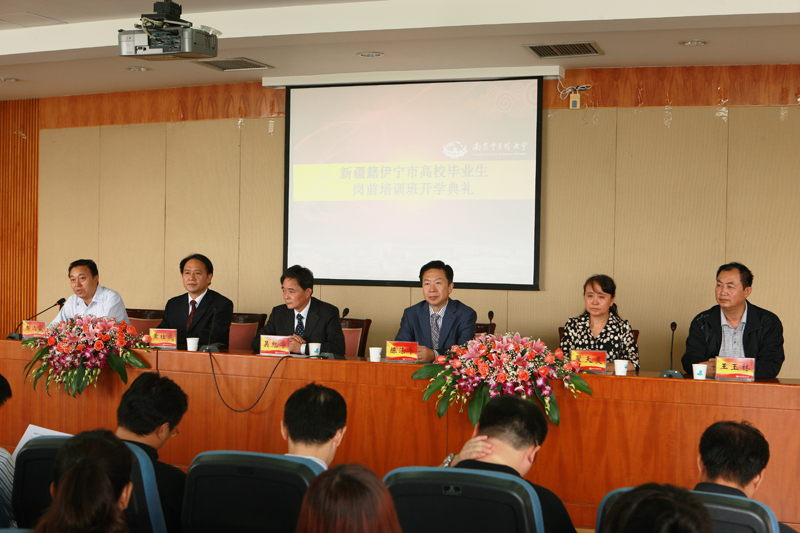 9月26日上午9:30,我校在行政楼416会议室隆重举行新疆籍普通高校毕业生岗前培训班开学典礼。校长吴勉华、校党委副书记、副校长陈涤平、副校长黄桂成、翟天灵、南京中医药大学新疆籍普通高校毕业生岗前培训班领队、伊宁市人社局副局长王玉林、我校有关单位党政负责人、教师和学生代表、岗前培训班辅导员、班主任、全体岗前培训学员参加了典礼。继续教育学院院长、校新疆籍普通高校毕业生岗前培训办公室主任郝达富主持开学典礼。