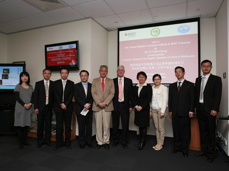 20111018,中国驻墨尔本总领事施伟强专程访问了我校与澳大利亚皇家墨尔本理工大学(RMIT)合作建立的中医孔子学院。中国驻墨尔本总领馆参赞衔教育领事郭晓娟一同到访,中医孔子学院全体人员参加了活动。