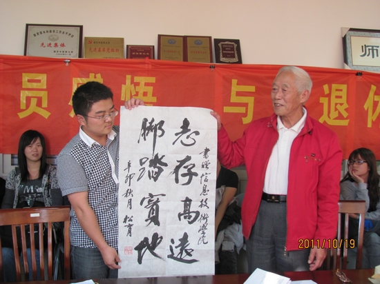 两位老党员给青年党员上了一堂生动的课,大家怀着崇拜、敬仰的心情与他们进行了互动、交流。离退休办公室关心下一代工作委员会和陈老院长赠送了大家“志存高远、脚踏实地”书法作品和《