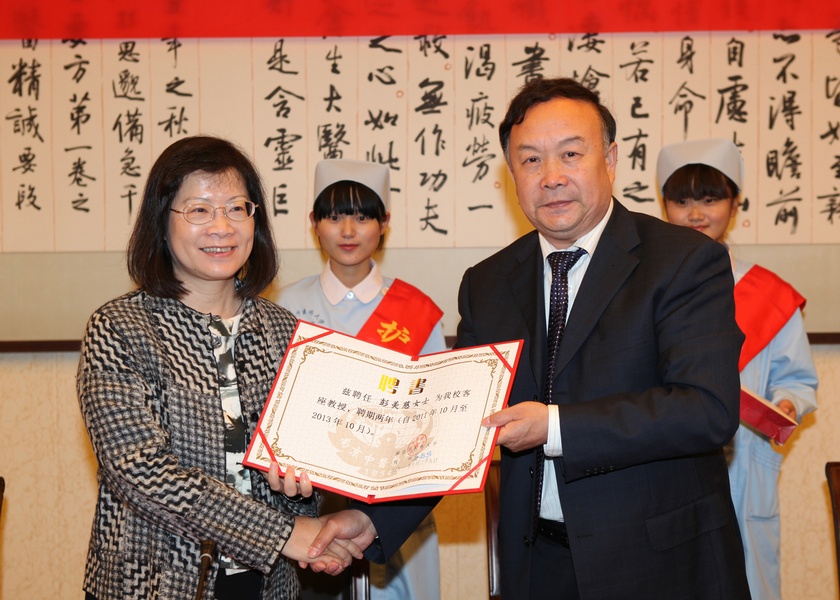 1029下午,香港东华学院校长汪国成教授、香港理工大学护理学院院长彭美慈教授受聘我校客座教授仪式在行政楼315会议室举行,段金廒副校长代表学校向两位客座教授颁发了聘书。参加聘任仪式的还有教务处、人事处、护理学院领导和教研室主任。两位教授随后在我校举办的“中医护理发展论坛”会议上发表了“求知若饥,虚心若愚——探索中医护理研究之精神”的精彩报告。
