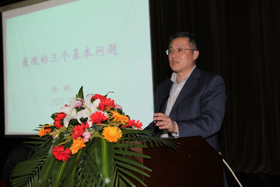 林枫局长首先提出了医改的三个基本问题。他认为医改最大的问题是部门利益的协调和共识的达成。他提出了医改的目标是以一切为了人民的健康为出发点,通过建立医疗卫生服务体系,使得人人享有基本的公共医疗卫生服务,从而提高公民的健康水平。紧接着,他围绕医改的三个基本问题,详细阐述了筹资机制问题、付费机制问题及服务机制问题。最后,林枫局长还积极接受大家的踊跃提问,并做出详尽的解答。报告会在热烈的气氛中圆满结束。