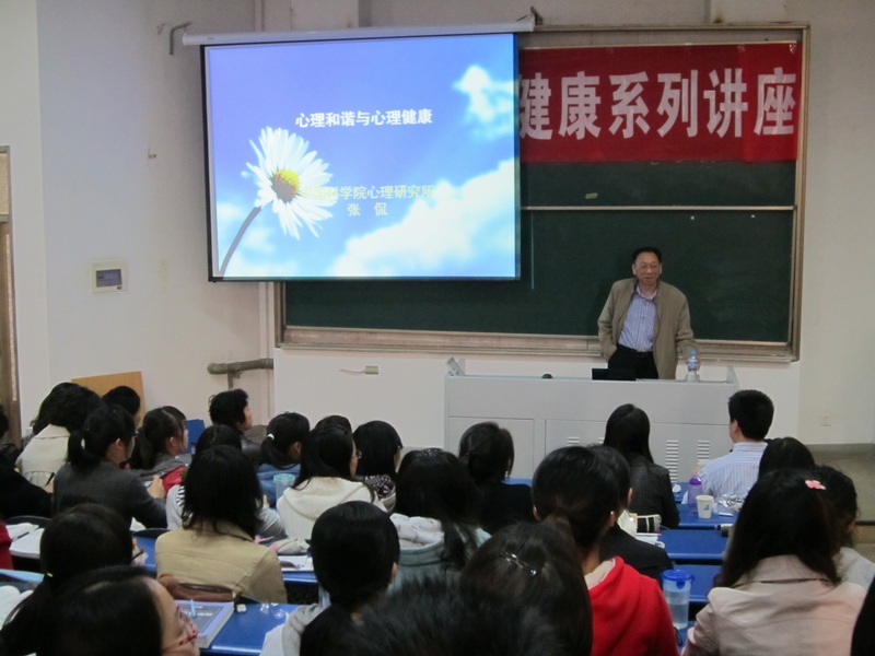2011年11月16日下午,我校“心理健康校园行”开展了一场主题为“心理健康与心理和谐”专题讲座,讲座由我国著名心理学家张侃教授主讲。张侃教授是中国科学院心理研究所研究员、学术委员会主任,博士生导师,第三世界科学院院士,国际心理科学联合会(IUPsyS)副主席、国际人因学会(IEA)执委、国际科学理事会(ICSU)科学自由与责任委员会委员、亚太地区委员会委员、中国委员会副主席。心理学院沈永健副院长主持了本次讲座,学院全体教师、部分专业学生以及学校班级心理委员出席了本次讲座。