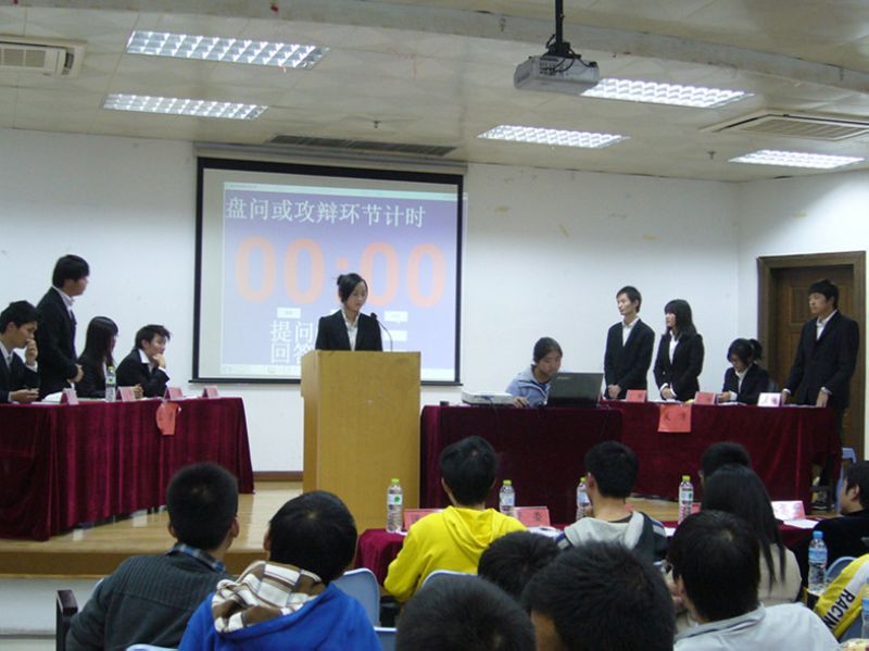 比赛开始,双方以“不以结婚为目的的恋爱是不是耍流氓”为辩题展开对辩。双方选手思维灵活,逻辑推理缜密,尤其是正方南京邮电大学代表队四辩和反方我校代表队二辩谢婉婉、四辩陈斌寅同学更是以其幽默而犀利的语言、良好的团队协作意识和能力、攻防自如的临场应变等赢得在场同学们的阵阵掌声,也深受评委和嘉宾的一致好评。前来观摩学习的经贸管理学院新生辩论赛的两支决赛队伍更是受益匪浅。赛后,