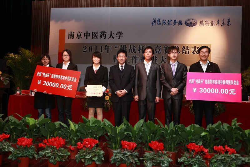 大会对长期以来关心、支持大学生素质拓展工作和“挑战杯”竞赛等活动的专家老师们进行了表彰,黄桂成副校长宣读了《关于表彰2010-2011学年南京中医药大学大学生素质拓展优秀指导教师的决定》。我校王旭东等25名教师、马健等24名教师、马冀明等29名教师分别获得大学生素质拓展优秀指导教师金、银、铜奖,主席台领导为获奖老师一一颁发证书。