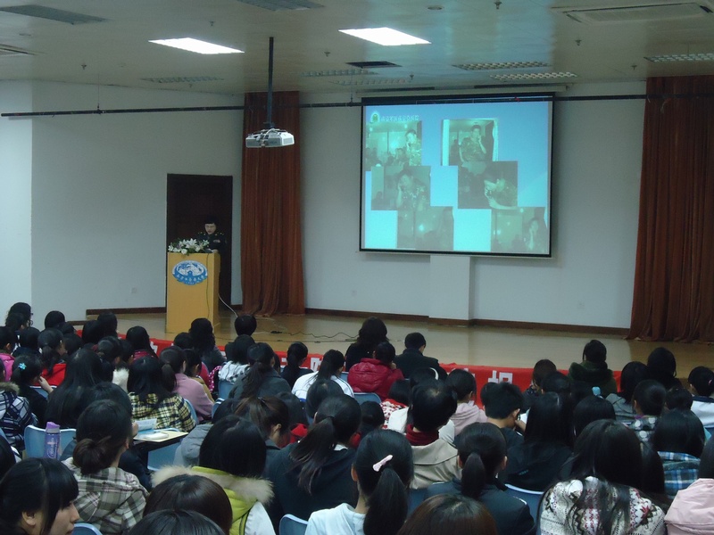 讲座上,陈声容护士长向大家讲述了她27年工作生涯中的两次重要经历:2004年,她代表国家远赴利比里亚进行维和医疗任务,彼时,她母亲身患重病,儿子面临中考,但她义无反顾,出色地完成了任务,并被联合国授予了“和平勋章”;2010年,她作为医院国家医疗队成员,代表国家首次赴海地实施国际人道主义救援,当地环境恶劣,但她和她的战友们克服种种困难为当地的居民送去医疗援助,凭借出色的表现,受到了解放军四总部的表彰。陈声容护士长用南丁格尔的一句话告诉在座师生,“善于利用生命价值意义的人与天使齐名”,而她也一直把情系病患作为毕生追求的理想,把“你的服务让我终身难忘是对我最真诚的赞美”作为她的工作目标。刘云主任随后为大家播放了《行进在南丁格尔的旗帜下》、《南京军总总医院建设巡礼》两部短片,向大家展示了军总的风采。