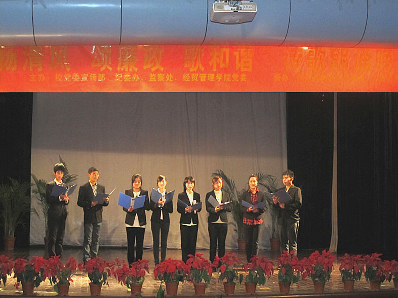 为推动我校反腐倡廉建设深入开展,提高党员干部和广大师生的廉洁意识、积极推进廉洁文化进校园,由校党委宣传部、纪委办、监察处、经贸管理学院党委主办,经贸管理学院分团委、大学生先锋社承办的“扬清风 颂廉政 歌和谐”诗词吟咏会于
