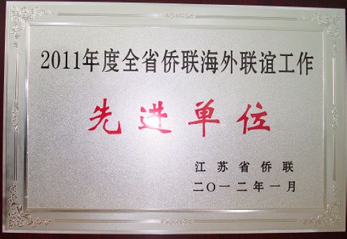 日前,江苏省侨联对2011年取得显著成绩的地市级侨联、在宁高校侨联和县(市、区)侨联予以表彰,我校侨联获得“2011年度全省侨联海外联谊工作-先进单位”。