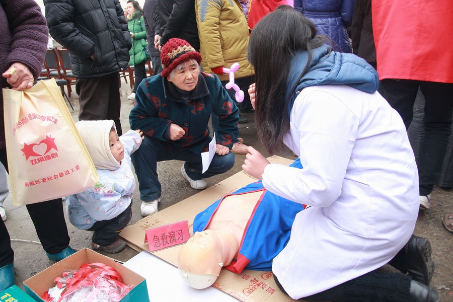 我校师生志愿者在各个社区开展了专家义诊、推拿、量血压、急救知识演练、传统养生功法传授、健康宣传册和保健香囊发放等活动,深受社区居民的欢迎和赞誉。