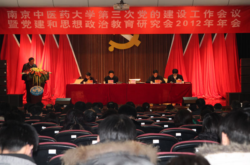 314日下午,我校第三次党的建设工作会议暨党建和思想政治教育研究会2012年年会在仙林校区大学生活动中心小剧场隆重召开。校党委黄成惠书记、吴勉华校长、陈涤平副书记、马家忠副书记、翟天灵副校长出席大会,全体中层以上干部、党支部书记、两课教师、专职辅导员、直属附属医院党务工作干部、学生党员代表参会。大会由马家忠副书记主持。