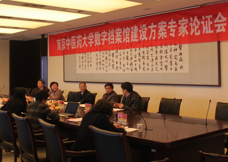 论证会上吴勉华校长首先致欢迎词,并对我校以及档案馆的总体情况做了介绍,然后由档案馆馆长何祖华对我校数字档案馆建设方案做了详细汇报。专家们在认真听取何祖华馆长的汇报后,对我校数字档案馆建设方案各抒己见并作了充分论证。专家们一致认为,《南京中医药大学数字档案馆建设方案》符合国家和江苏省数字档案馆建设的相关标准和规范,设计科学合理。方案强化数字档案馆的资源体系建设,积极推进传统载体档案的数字化转化工作和电子文件的接收管理,突出数字档案馆建设的本校特色,方案覆盖全面,具有良好的可行性。方案以实现档案数字化管理为目标,在现有档案信息化建设的基础上,从资源体系、服务体系、安全体系、人才体系四个方面,对数字档案馆的网络系统、应用系统和系统安全进行了设计,系统设计兼顾了技术先进性和实用性,具有较好的可靠性、前瞻性,考虑了未来档案业务的增长和变化,可以为学校和公众用户提供更加便捷的档案查询和利用服务。最后,在座的几位专家指出方案中应该注意的问题。