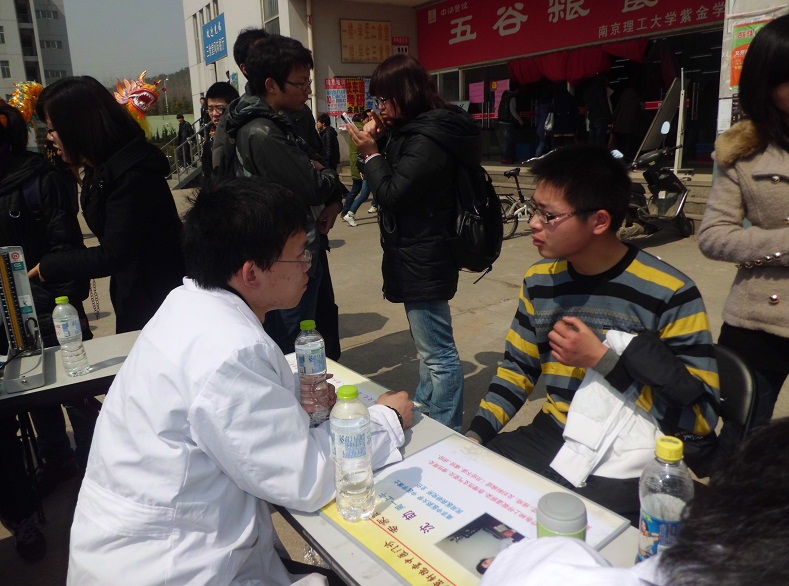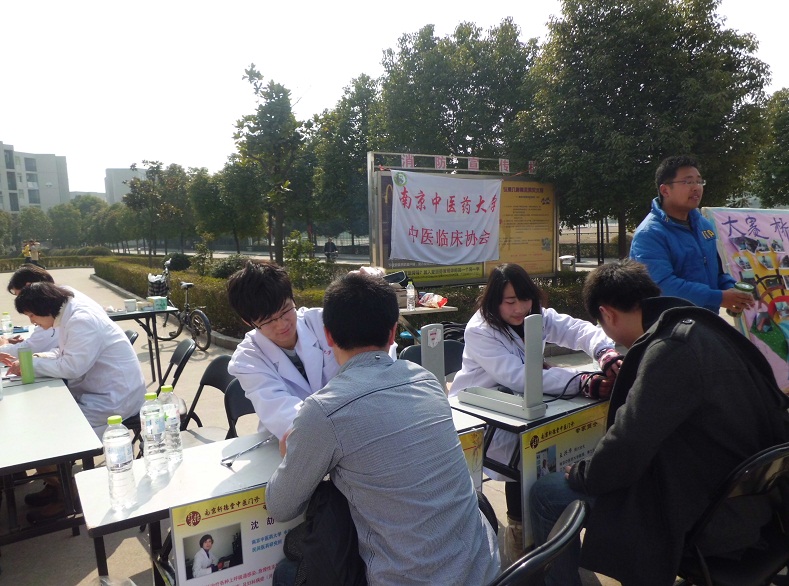 2011年3月14日,基础医学院分团委、中医临床技术交流协会的18名志愿者带着饱满的激情走进了南京理工大学紫金学院,为那里的老师和同学们免费提供医疗服务。早上7点,协会的部分干事便前往紫金学院,他们在紫金学院的二食门口摆好血压计、火罐、艾条之类的医疗器具后,便有不少人前来咨询此次义诊的一些具体内容。前去义诊的志愿者们都尽心尽责、不辞辛劳地为前来询问的人们提供服务,这种忘我与负责的精神正是协会所需要的。夕阳西下,义诊也接近了尾声,志愿者们收拾完器材依依不舍地离开了紫金学院。