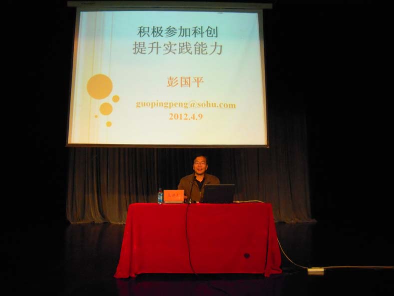 开班典礼之后,2011年全国大学生挑战杯特等奖获奖作品指导老师﹑南京中医药大学药学院制药工程系主任﹑博士生导师彭国平教授做了“培养创新能力,努力做好科创”的讲座。