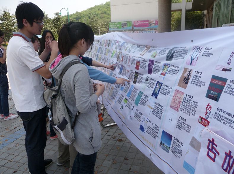 本次活动中所展示的书目均由特邀的各学院教研室老师推荐。活动当天,现场人来人往、川流不息,现场展板旁的工作人员们热情地为前来咨询的同学讲解,细致的推荐着所审阅整理出的100本专业图书,吸引了众多学子驻足。