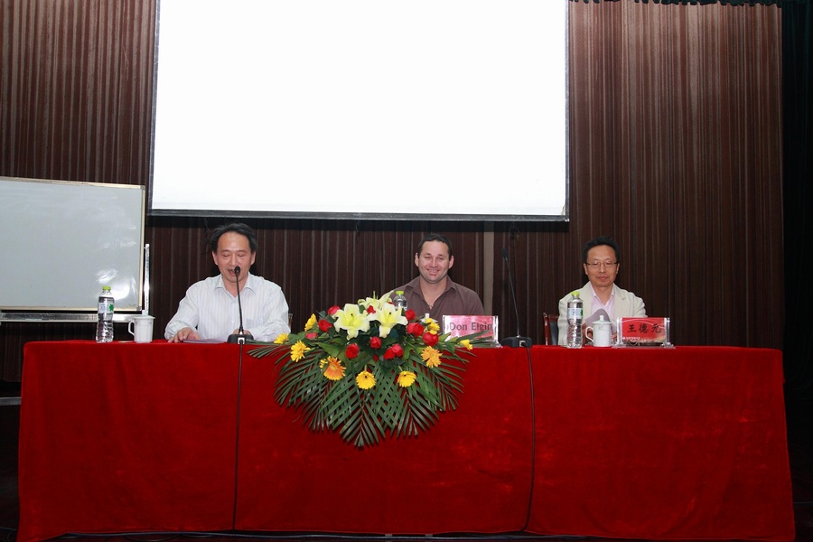 王德元先生和Don Elgin(多恩·爱尔金)先生为我校师生作了《成功人生的八大秘诀》专题报告。王德元先生是我校1979级校友,现任澳大利亚国际教育集团主席。Don Elgin先生,澳洲著名演讲人,澳大利亚奥林匹克残运选手,先天性左小腿缺失,在悉尼和雅典奥运会共获得5枚奖牌。十多年来在全球巡回演讲一千多场,以自己的亲身经历,给弱势群体以身心激励,从而获得追求人生理想和目标的意志与毅力,激励千百万人找到人生的理想和目标。Don Elygin先生以一段视频作为切入点拉开了报告的序幕,并通过VCR分享了他从懵懂走向成熟的历程,Don Elgin先生在报告中提出“love life”、“Dare to dream”,“Set goals”希望大家热爱生活,敢想敢干,勇于挑战自我,这样才能获得成功。他通过大量的照片、视频,展现他乐观,永远笑着面对残疾这一残酷的事实。Don Elgin先生一直鼓励大家时刻拥有热情,“Passion is a flame that burns within",带着热情面对自己的生活,勇敢的选择成功。