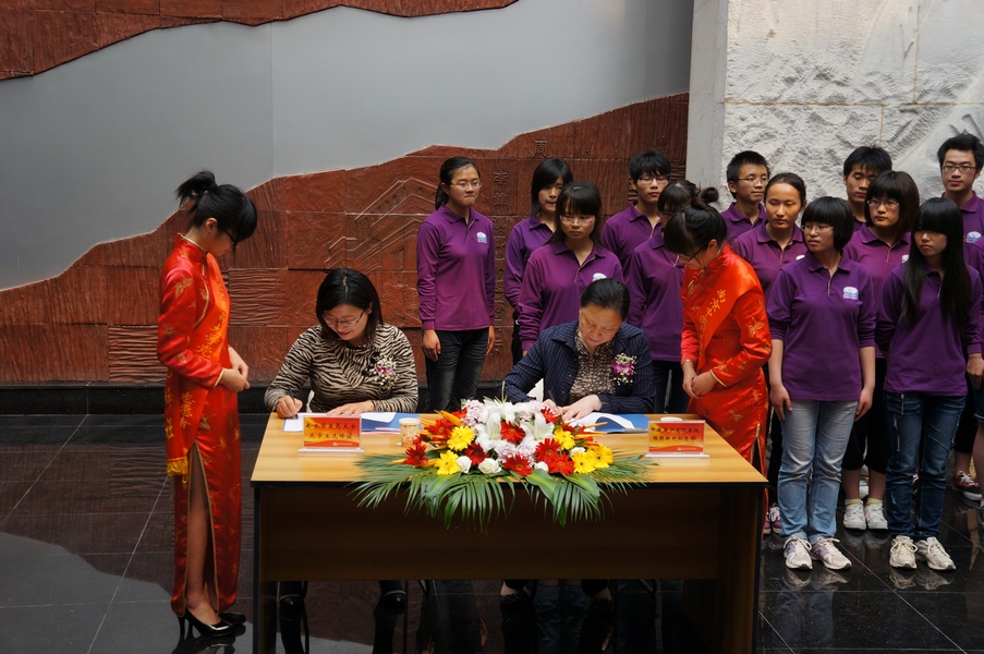 共建仪式在响亮的国歌声中拉开了序幕,王化许馆长在欢迎词中充分肯定了我校悠久的历史与注重实践、注重育人的作法,并向大家承诺定会以高度负责的态度为我校党员提供实践服务平台。经贸管理学院汪元平副书记介绍了先锋社的成立背景、发展历程及所取得的成果。纪念馆安立春书记宣读了共建协议并与汪元平副书记签订了共建协议。马家忠书记和王化许馆长为党员先锋服务站揭牌,将仪式推向了高潮。先锋社理事长姜敏敏同学发言并带领社团骨干进行了庄严宣誓。人文社科部主任