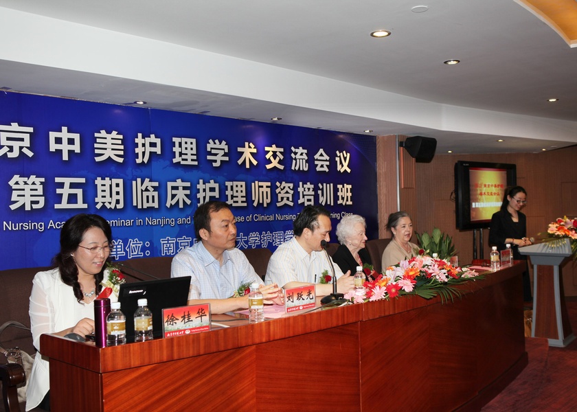6月7~8日,由南京中医药大学护理学院主办的"2012'南京中美护理学术交流会议暨第五期临床护理师资培训班"在南京黄埔大酒店隆重举行。本次会议以加强护理优势学科建设、建立中外合作交流平台、提高临床护理师资水平、推进临床护理教学工作为宗旨。来自全国各地64所医院及学校的一百二十余名代表参加了本次会议。美国德州大学副校长兼护理学院院长Patricia L.Starck教授、美国德州女子大学护理学院副院长Karen C.Lyon教授、美国KingWood医疗中心注册护士李玲、学校教务处处长刘跃光教授受邀出席了本次会议。我校副校长黄桂成教授出席大会开幕式并致欢迎辞。