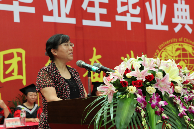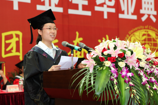 毕业生代表国际教育学院美国籍魏敏兰同学发言