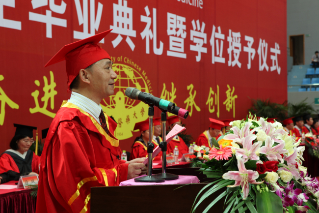 “深深母校情,悠悠学子心”。药学院刘晨同学和国际教育学院美国籍魏敏兰同学代表全体2012届本科毕业生作了感人肺腑的发言。他们在表达对母校感激和眷恋的同时,立誓将秉承“团结奋进,继承创新”的校风,恪守“自信、敬业”的校训,努力弘扬“仁德、仁术、仁人”精神,为中医药事业而努力奋斗,为人类的健康不断造福。