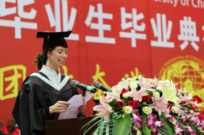 毕业生代表药学院刘晨同学发言 毕业生代表国际教育学院美国籍魏敏兰同学发言