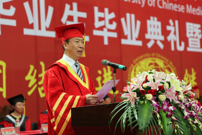 “深深母校情,悠悠学子心”。药学院刘晨同学和国际教育学院美国籍魏敏兰同学代表全体2012届本科毕业生作了感人肺腑的发言。他们在表达对母校感激和眷恋的同时,立誓将秉承“团结奋进,继承创新”的校风,恪守“自信、敬业”的校训,努力弘扬“仁德、仁术、仁人”精神,为中医药事业而努力奋斗,为人类的健康不断造福。