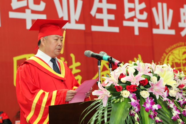 校长、校学位委员会主席 陈涤平副校长主持毕业典礼暨学位授予仪式 段金廒副校长宣读优秀毕业生表彰决定 黄桂成副校长宣读学士学位授予决定