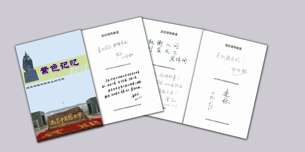 2012届毕业生纪念册工作是在院领导的高度重视和正确领导下,学工办老师、毕业班班主任和同学的大力支持下,院学生会同学数易其稿、编撰制作而成。原医药管理系倪征书记、原经贸管理学院唐传俭书记、张端珣书记、曹凯副书记、现任经贸管理学院领导班子及班主任们为此次2012届毕业生纪念册亲笔寄语。纪念册内容丰富,重点突出,分为“栀子花开 母校沁夏骊歌”、“如梦情怀 最是经管风”、“往事回忆 恰同学少年”、“漫步杏林 先声岁月如歌”、“浓情墨迹 且行且珍惜”、“那些年 我们一次走过”六个版块,以丰富的文字和图片记录了班级风采,诠释了先声大家庭的青春故事,记录了班主任的殷切期望,留下了同窗的心声与祝福。