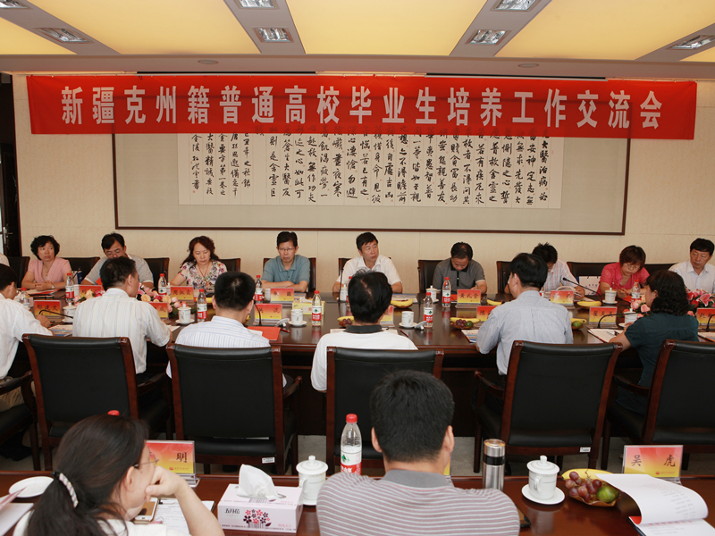 黄桂成副校长作为南京中医药大学新疆籍高校毕业生培养工作领导小组常务副组长,向与会领导汇报了我校新疆籍高校毕业生岗前培训班的工作情况,对前期取得的经验和成绩进行了总结。黄校长主要就以下五个方面做了介绍:一是领导高度重视,组织细致周密,运转高效有序。学校成立了由吴勉华校长任组长的新疆籍普通高校毕业生岗前培训领导小组,组建了以继续教育学院为主、学工、教务、后勤等部门共同参与的新疆籍普通高校毕业生培养工作办公室。培训班的各项工作,校领导全程参与,亲自过问,安排解决各种问题,对培训班的教学、住宿、饮食等工作进行周密的安排。二是发挥党员和党团组织的重要作用,建立适应培养需要的规章制度。健全培训班班级机构,及时成立了党(团)支部,成立班委会。理清思路,明确职责,根据管理要求,制定《南京中医药大学新疆籍毕业生培养办公室岗位职责》,制定教学计划、协调相关部门督促工作落实,将工作精力更多地放在学员思想政治工作上。三是强化保障机制,对学员实行全方位精细化管理。四是明确中心任务,紧紧围绕目标开展各项工作。培养工作是一项民生民心工程、民族团结工程、也是人才援疆科技援疆工程,学校坚持按照培养一批坚信社会主义、热爱伟大祖国、坚定民族团结、拥有先进理念、具备管理才能、掌握科学知识、扎根服务基层的人才队伍的目标,以求真务实的精神,扎实的开展各项工作。五是调动学员积极性,培养综合素质高的专门人才。随后,黄校长还就我校迎接新疆克州籍高校毕业生的前期准备工作进行了简要介绍,他表示,在7月份接到通知后,学校召开了专门会议布置相关工作,保证我校新疆克州籍高校毕业生岗前培训班的行政管理体制不变、配套设施不变、师资力量不变,保证在前方指挥部的领导下,兢兢业业做好各项工作。