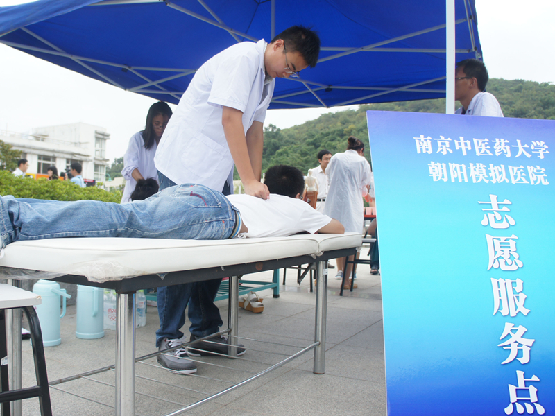 志愿者为新生及家长提供推拿服务