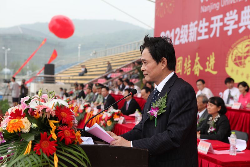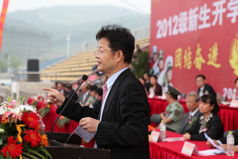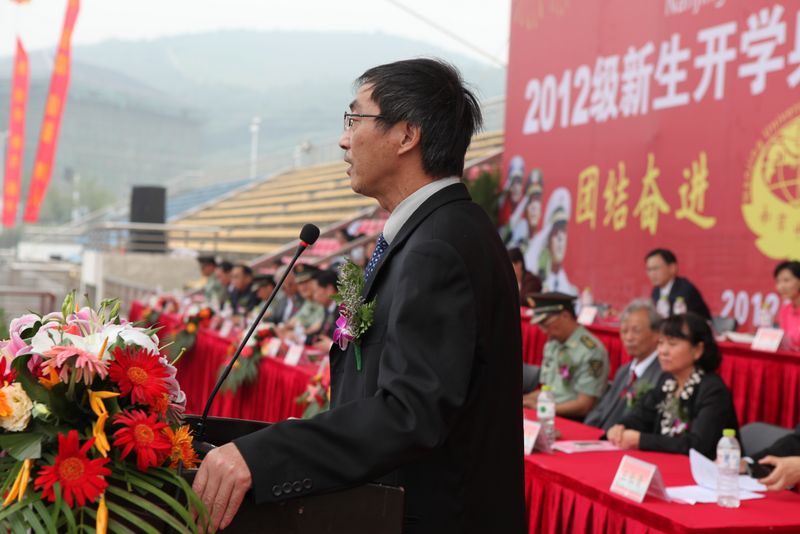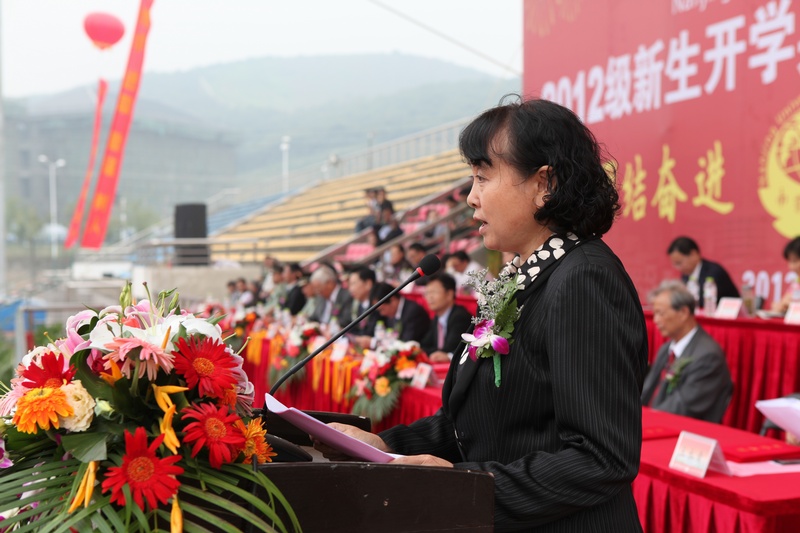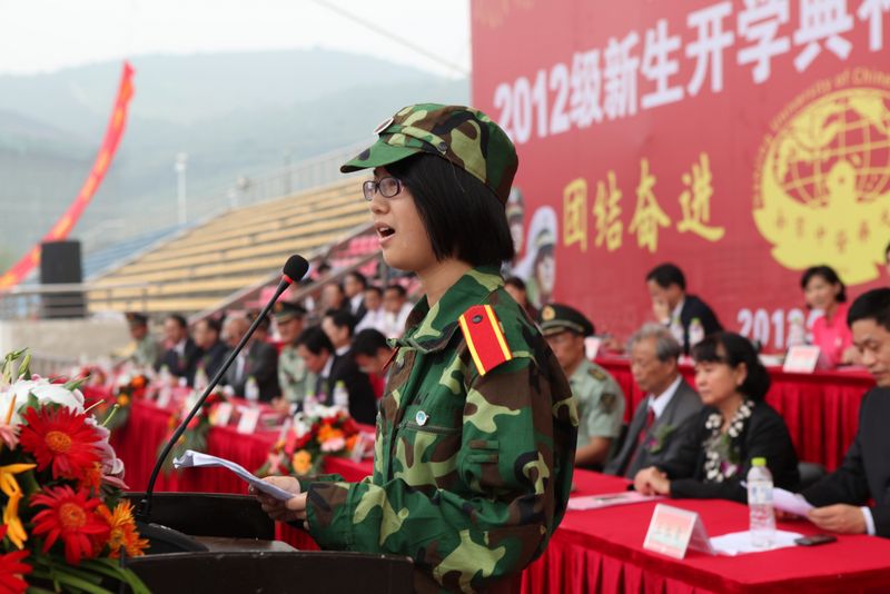 开学典礼在军训汇报表演结束后举行。吴勉华校长在言简意赅地介绍了学校的风雨历程、办学优势后,以师长和学长的身份寄语2012级新生,提出了三点要求和希望:一是希望大家尽早明确奋斗目标,尽快适应大学学习环境,养成自立自强的品格;二是希望大家珍惜时光,立足专业,培养自身的能力和素质,在走出校门时,“不会因为碌碌无为而羞愧”,而能自豪地说“我的大学我做主”;三是希望大家肩负责任,勇于担当,树立正确的人生观和价值观,要学会知恩、感恩、报恩,“对爱你的人和你爱的人负责”。