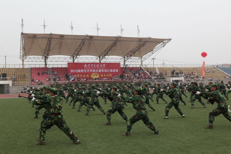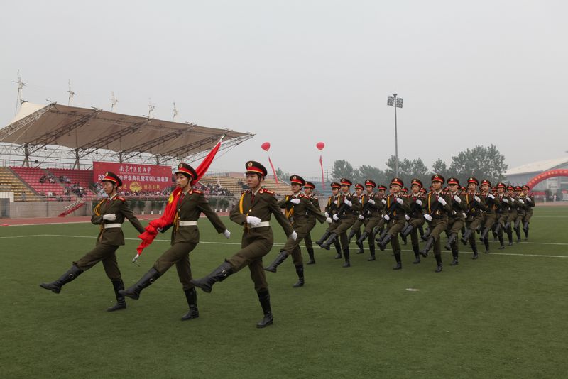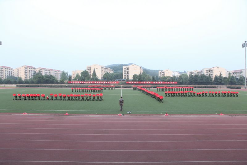 伴随着雄壮的国歌声,我校女子国旗班举行了庄严的升旗仪式。校党委陈涤平书记检阅各受训方阵。在随后进行的分列式上,同学们排着整齐的队伍,迈着矫健的步伐,喊着铿锵有力、响彻全场的口号,依次从主席台前走过,他们挺拔的身姿、黝黑的脸庞、坚毅的目光、饱满的精气神充分展示了军训以来刻苦训练的成果,赢得了学校领导、承训单位首长和在场师生员工的阵阵掌声。分列式表演后,同学们还进行了擒敌拳、紧急集合、棍术、格斗术、刺杀操、军体拳表演。由女生方阵组成的“三仁”字样,将学校的办学教育理念定格在了操场。