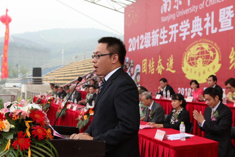 典礼上,我校校友代表、先声药业任晋生董事长向同学们描绘了中医药行业的美好前景,要求同学们要始终存有一个伟大的梦想,要有想象力和创造力,要养成乐于助人和主动沟通的习惯;教师代表王旭东教授在发言中动情地说:“青春比朝霞还要绚丽,比玫瑰还要芬芳,我愿用所有成就和头衔去换取青春,坐到你们中间。……学校事业薪火相传,我们全体教师愿为你们的理想插上飞翔的翅膀!”校学生会主席薛君同学及新生代表王雨蕾同学先后发言。