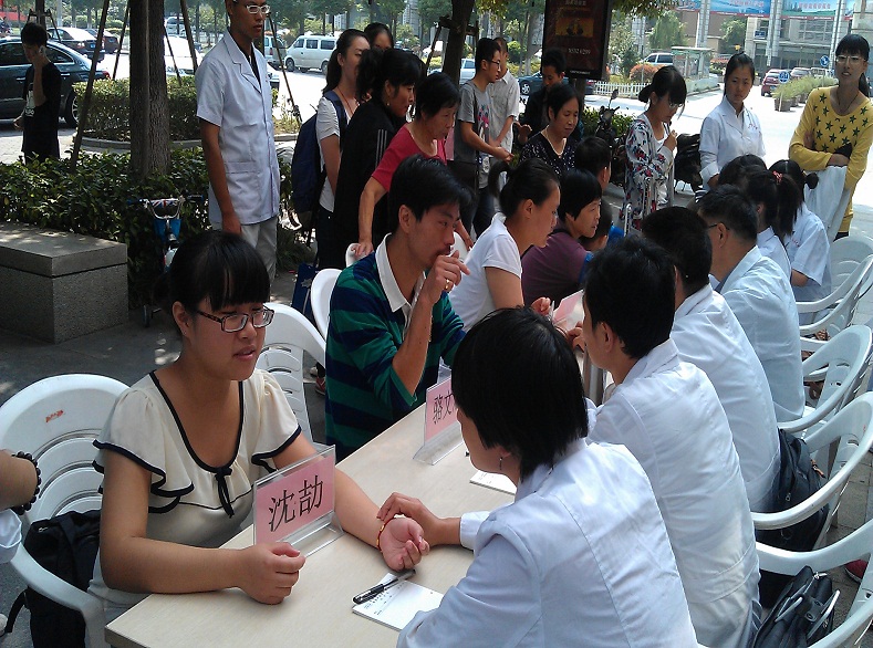 仪式结束后,轩德堂还安排了专家义诊,其中王春根教授在现场为居民们讲解了“药材鉴定”,全靠严格的检药程序把关,才有了如今轩德堂良好的疗效和声誉。中医临床协会的成员们负责测量血压,大一新生志愿者也在这次活动中奉献了自己的力量。整个义诊过程井然有序,完善贴心的服务态度提现了我校师生仁德、仁术、仁人的“三仁”理念。活动结束时,现场群众都对这次活动竖起了大拇指。