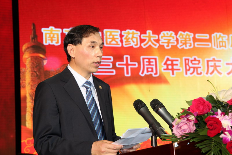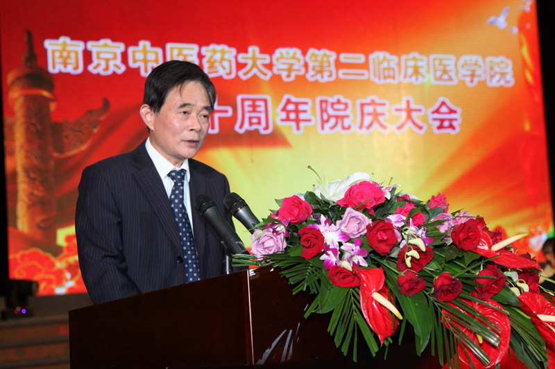 16时,伴随着庄严的国歌声,第二临床医学院三十周年院庆大会在南京中医药大学仙林校区体育馆隆重召开。出席庆典并在主席台前排就座的领导和嘉宾有南京中医药大学党委书记陈涤平,南京中医药大学校长吴勉华,南京中医药大学原党委书记黄成惠,南京中医药大学副校长程海波,丰盛集团总裁、南京中医药大学丰盛健康学院院长季昌群,中央电视台主持人郎永淳,华佗针灸医疗器械有限公司董事长曹炀,陕西中医学院副校长刘智斌,山西中医学院副校长冀来喜,著名老专家、学院老前辈肖少卿教授、杨兆民教授、刘志诚教授、马永华教授、徐恒泽教授、李玉堂教授、李忠仁教授,针药结合省部共建教育部实验室主任、著名针灸学专家王玲玲教授,国家中医药管理局中医文化巡讲专家、中国气功学会常务副理事长、著名运动养生专家金宏柱教授,第二临床医学院院长、丰盛健康学院执行院长顾一煌等,大会由第二临床医学院唐春霞书记主持。