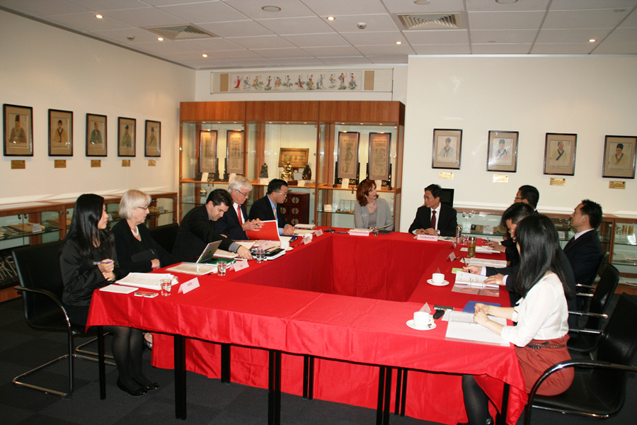 中医孔子学院首届理事会第三次全体会议于20121024在墨尔本召开。 中方理事南京中医药大学吴勉华校长、黄桂成副校长、李新庆先生、我校国际交流与合作处刘嵚副处长以及澳方理事RMIT大学校长Prof. Margaret Gardner、副校长Prof. Daine Alcorn、副校长Mr. Stephen Connelly、副校长Prof. Peter Coloe、健康学院院长Prof. Charlie Xue出席会议。中国驻墨尔本总领事施伟强先生会见了全体理事,并对大会的召开表示热烈祝贺。