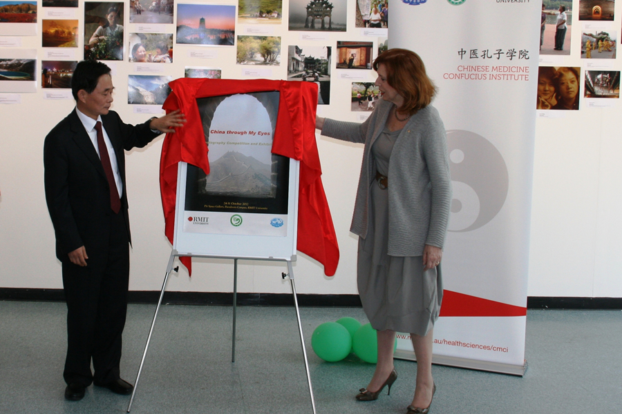 会议期间,吴勉华校长和RMIT大学校长Prof. Margaret Gardner共同为中医孔子学院主办的“我眼中的中国”摄影展揭幕。
