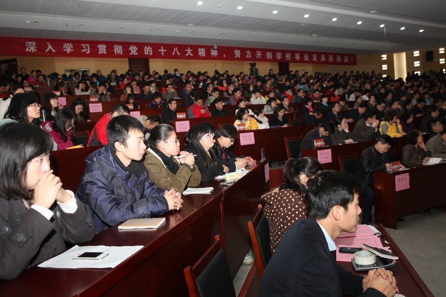学校全体校领导,全体中层干部,离退休老同志代表,各民主党派负责人,各级人大代表、政协委员,全体教师、全体辅导员、学生代表等人员参加了报告会,认真聆听了辅导报告。